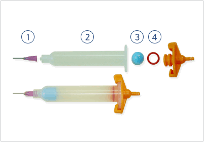 ▶ 点胶机专用高等级针筒,采用特殊的构造及材质,提高胶液的流动性